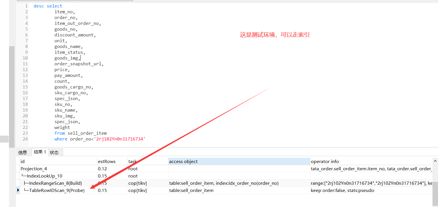 测试环境同样的sql可以走索引,但是生产环境不走索引