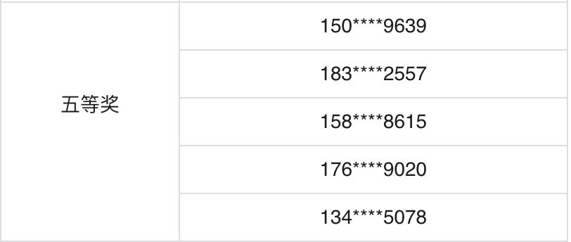 中奖名单: