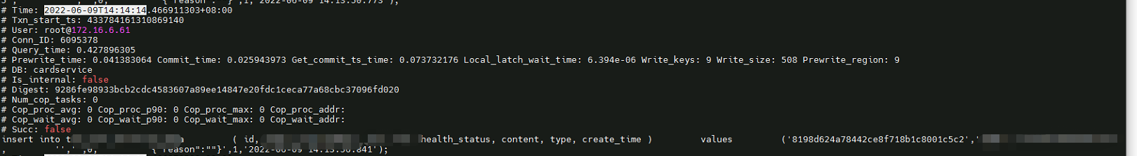 只有慢日志中有insert失败的记录,tidb.log中没有相关的错误日志