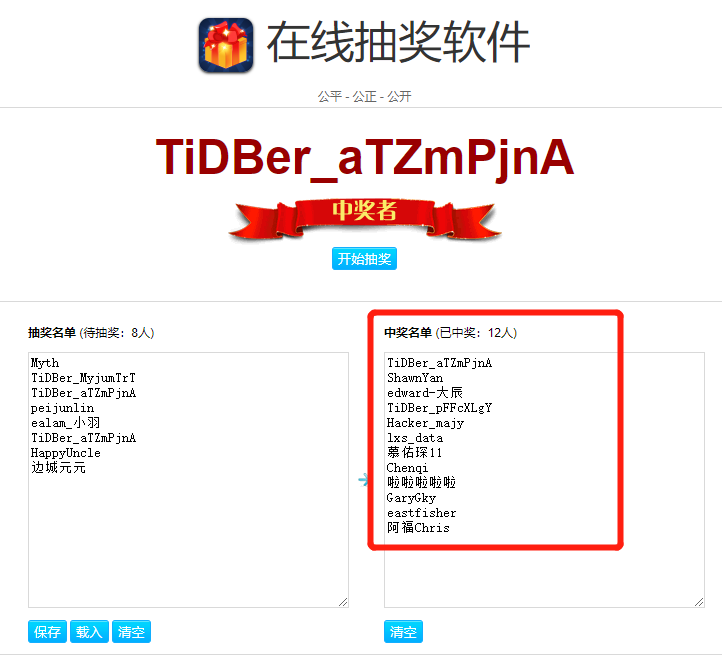 随机抽奖录屏过程公示: