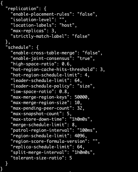 {"id":1343129094,"address":"192.168.1.23:20161","state_name":"Up","capacity":"1.455TiB","available":"1.381TiB","used_size":"190.3MiB","region_count":92,"region_size":841,"leader_count":52,"leader_size":544,"region_weight":2,"leader_weight":1}