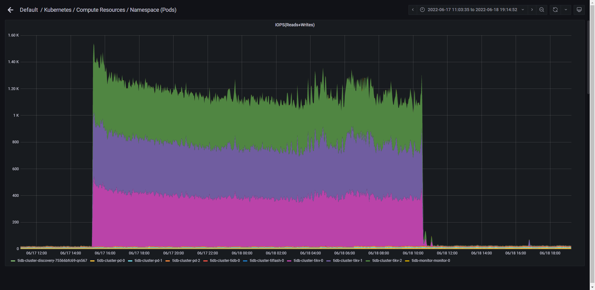 【概述】 6.17日使用java多线程脚本,起100个线程,通过JDBC连接,往TIDB里插入1.2T(3019172987条)数据,6.18完成数据写入,tikv长时间占用内存不释放