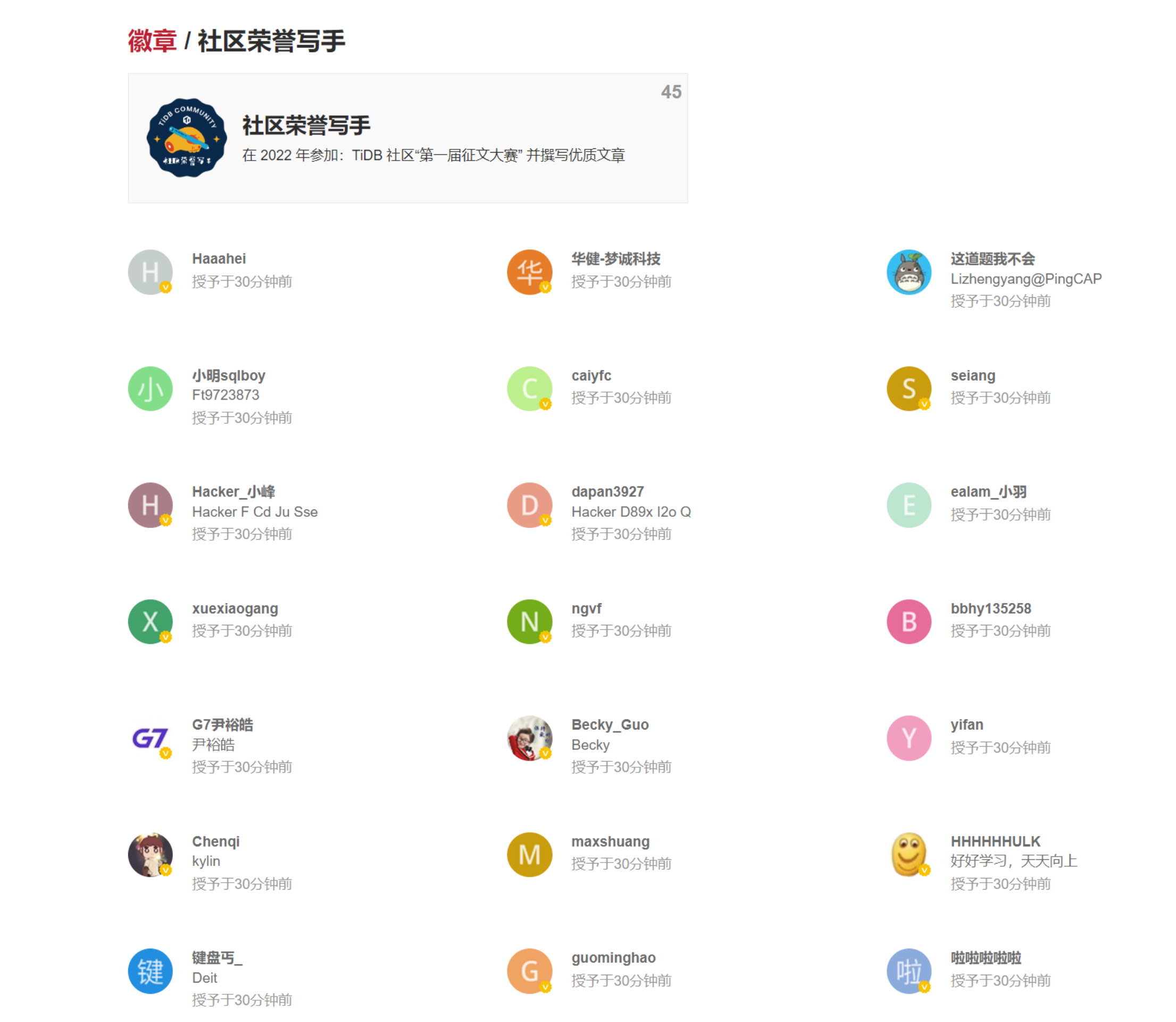恭喜参加第一届征文大赛的老师们,获得社区荣誉写手徽章