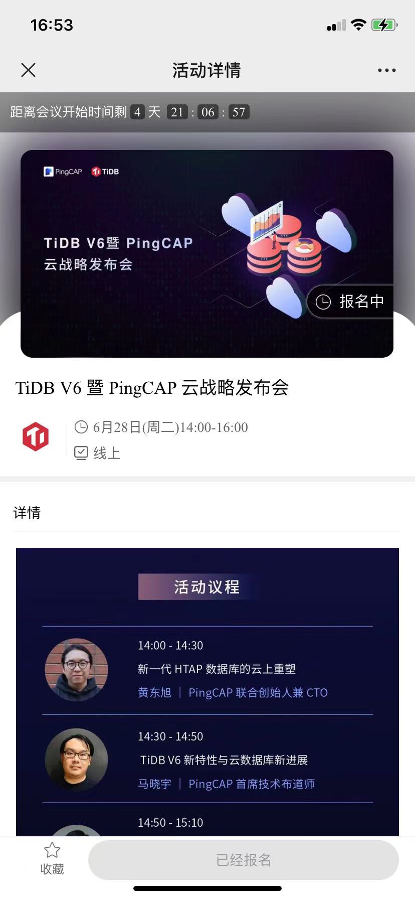 时隔 4 个月,东旭又重新回归到 TiDB V6 线上发布会开讲啦!
