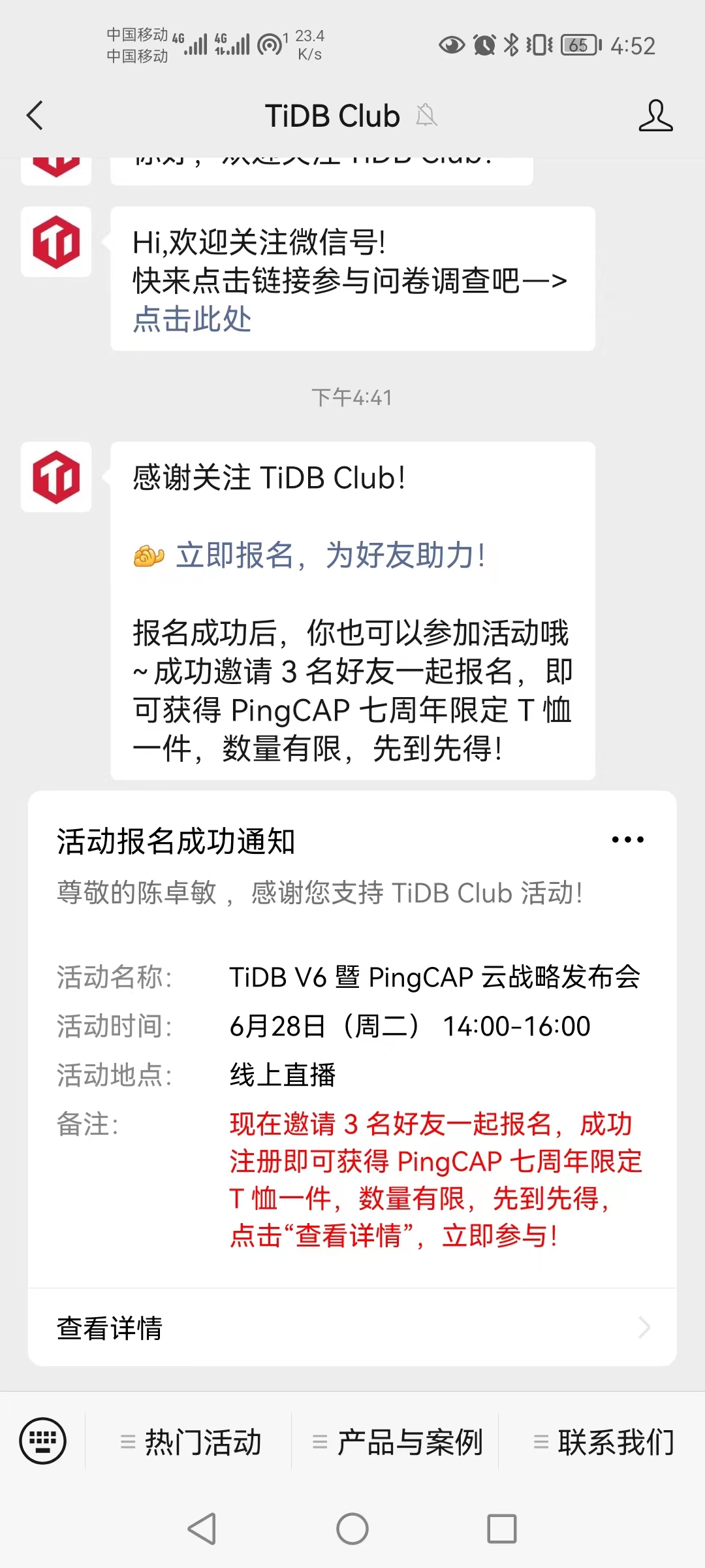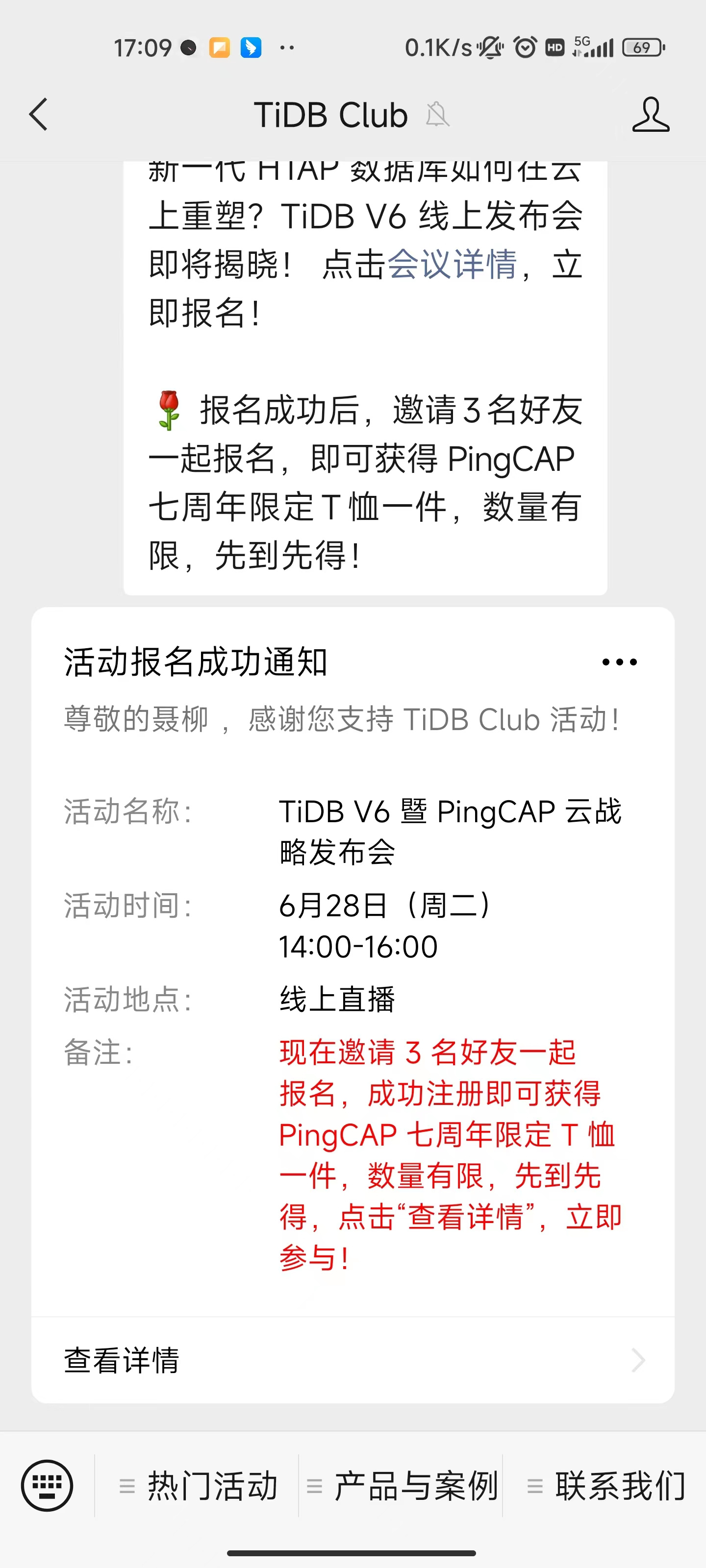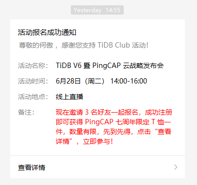 抽 “2名”晒图报名小伙伴,寄送还未上市的 TiDB 社区挎包