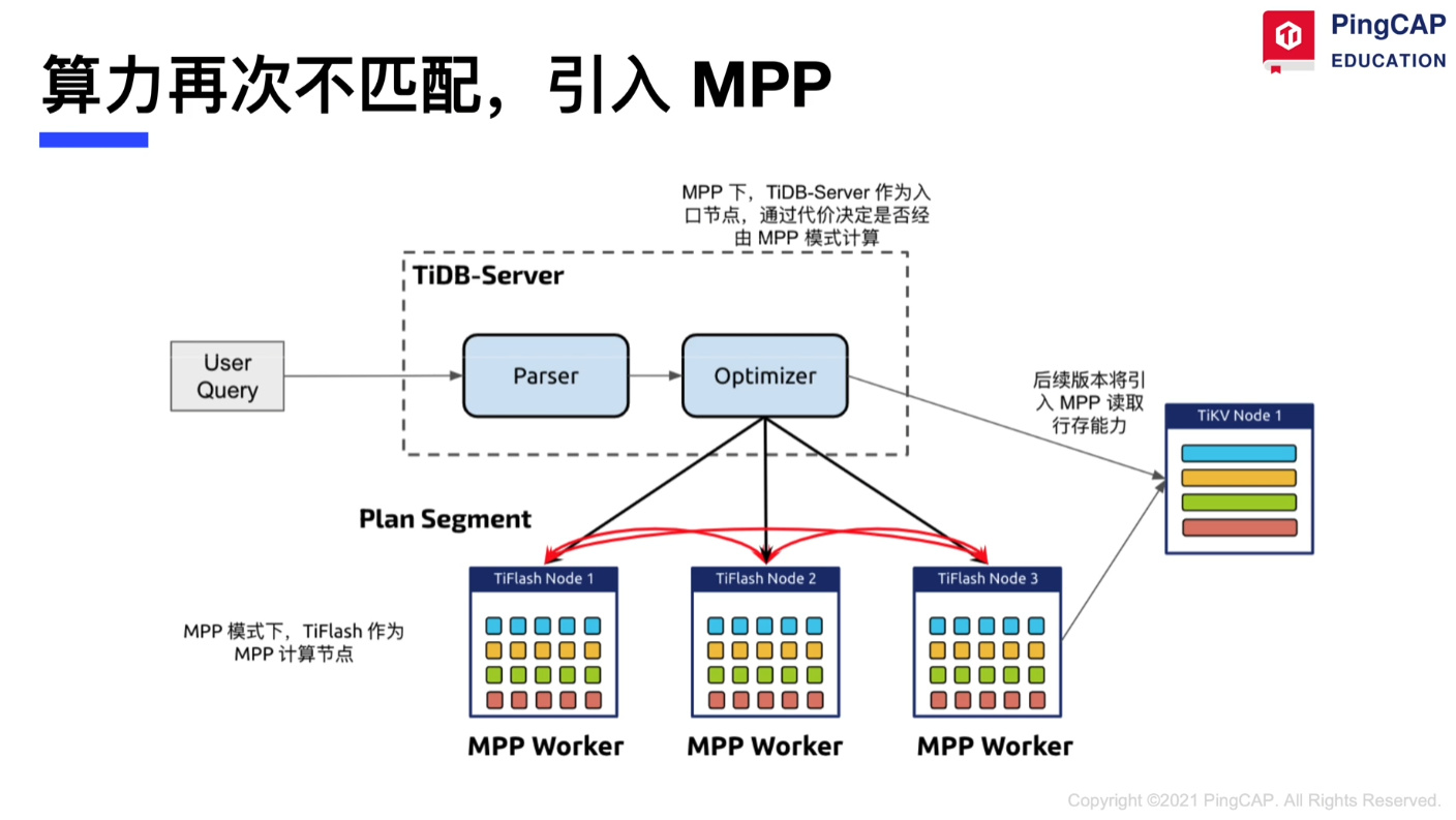 TiFlash以raft learner方式接入multi-raft组,使用异步方式传输数据,对TiKV产生非常小的负担。