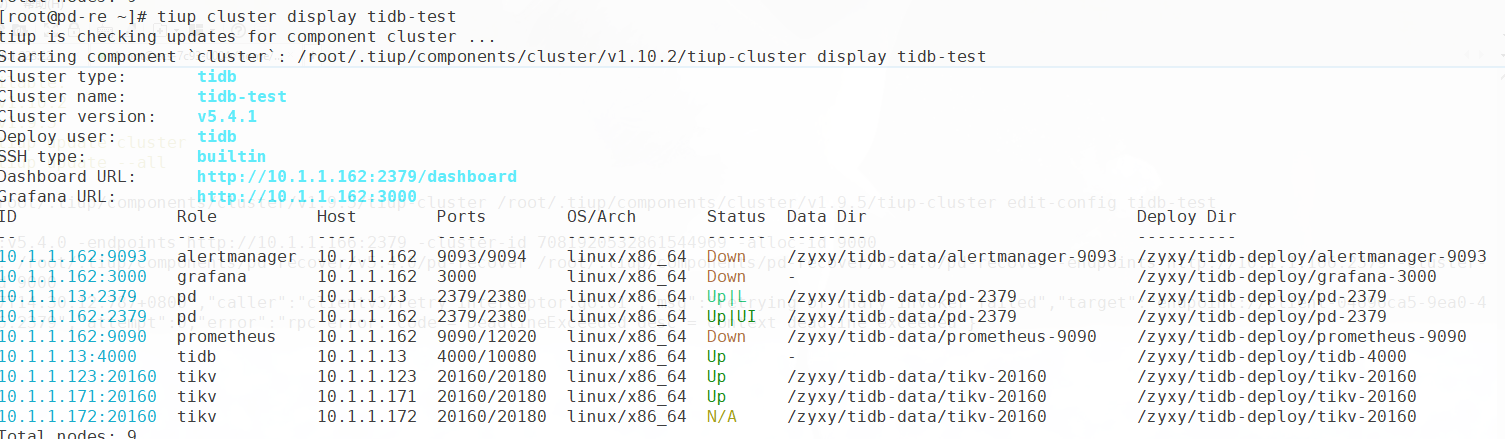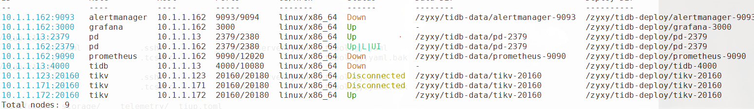 恢复过程发现因为网络故障,所有节点ip更换成10.1.1.0段,导致各tidb节点都宕机状态,尝试手动更换IP(修改tikv启动配置文件,修改tiup的meta.yaml等配置文件)启动异常不可行,尝试通过扩缩绒的方式恢复,失败。