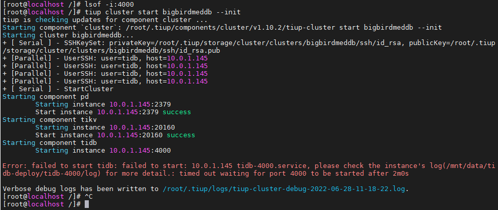 [2022/06/28 11:23:27.687 +08:00] [INFO] [base_client.go:105] ["[pd] init cluster id"] [cluster-id=7110132895032081485]