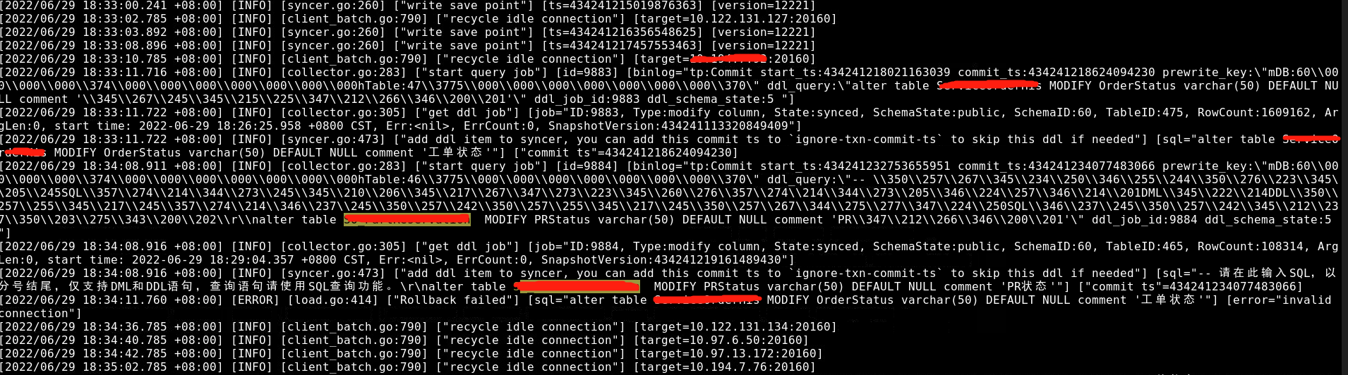 这个 bug 的触发条件是并发执行 alter table modify column,你可以通过命令检查下 ddl 有没有被重复(并发)执行: