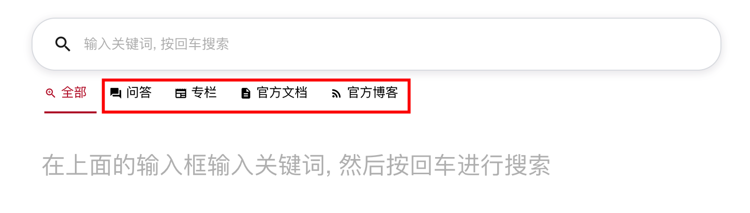 搜索范围涉及官方文档、博客、asktug 问题、专栏等,80% 的技术问题都可以在这里找到答案