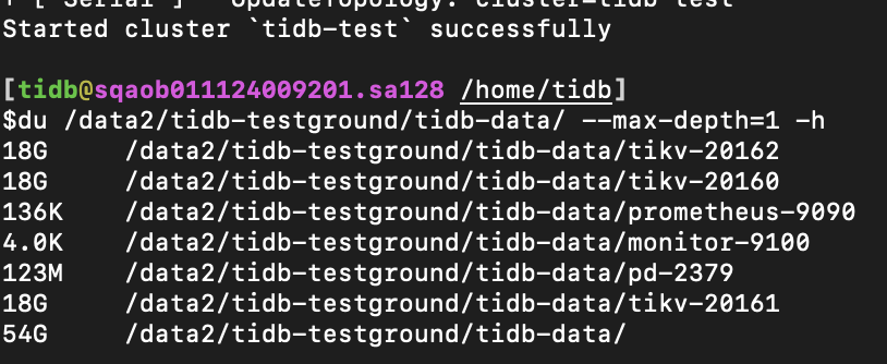 TiDB 单节点伪集群,数据文件系统占用大小