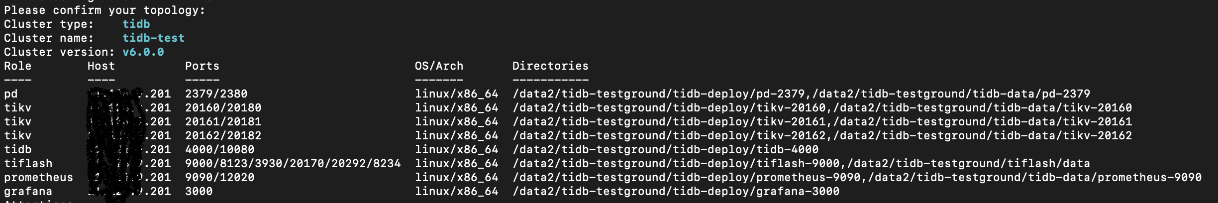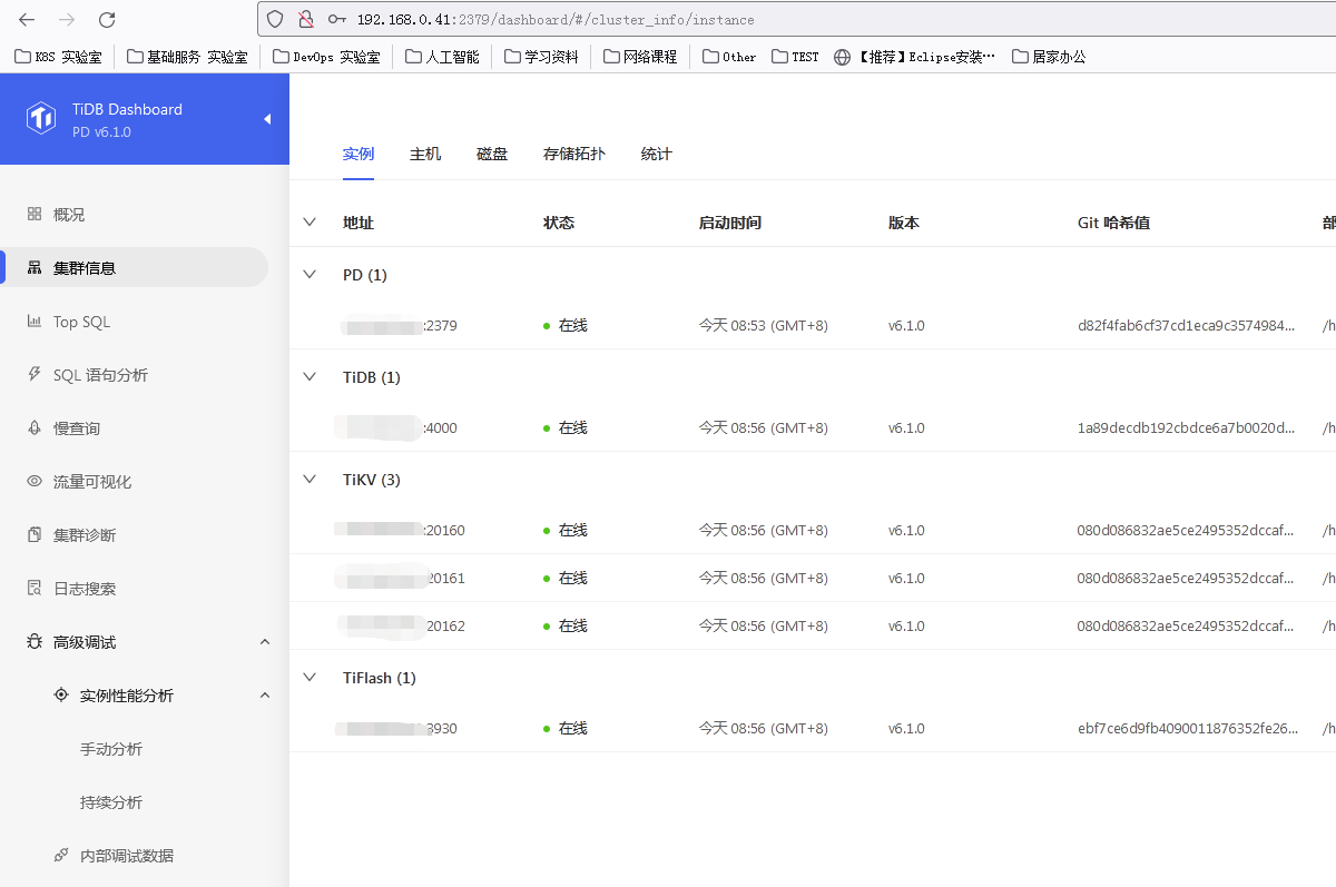 TiDB单节点伪集群,信息如下