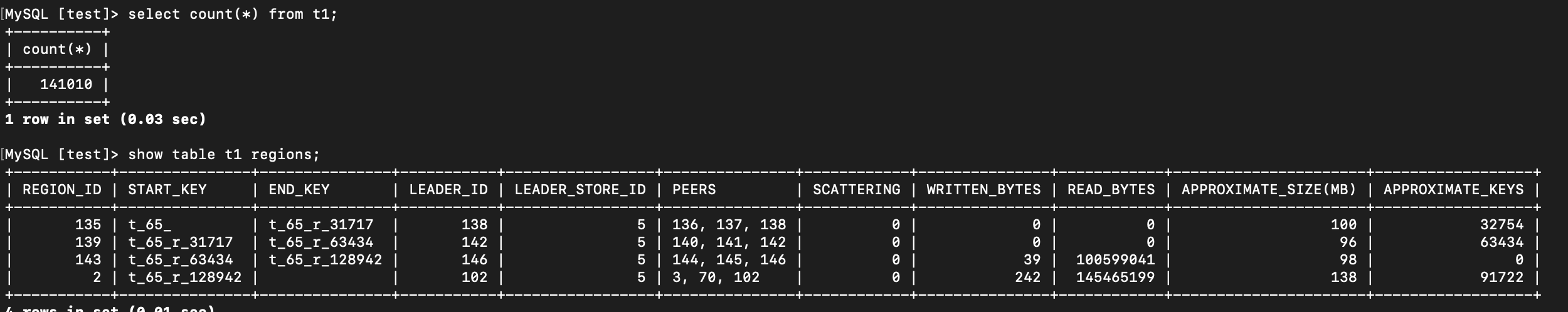 按照https://docs.pingcap.com/zh/tidb/dev/sql-statement-show-table-regions插入测试数据