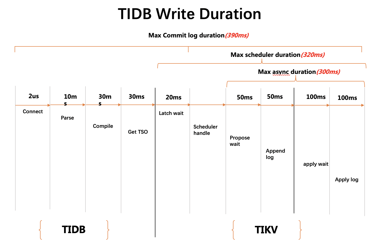 - PD TSO Wait Duration: 我们可能拿到一个 tsFuture 之后,很快做完 Parse 和 Compile 的过程,这个时候去调用 tsFuture.Wait(),但是这个时候 PD 的 TSO RPC 还没有返回,我们就需要等,这个时间反应的是这一段的等待时间。