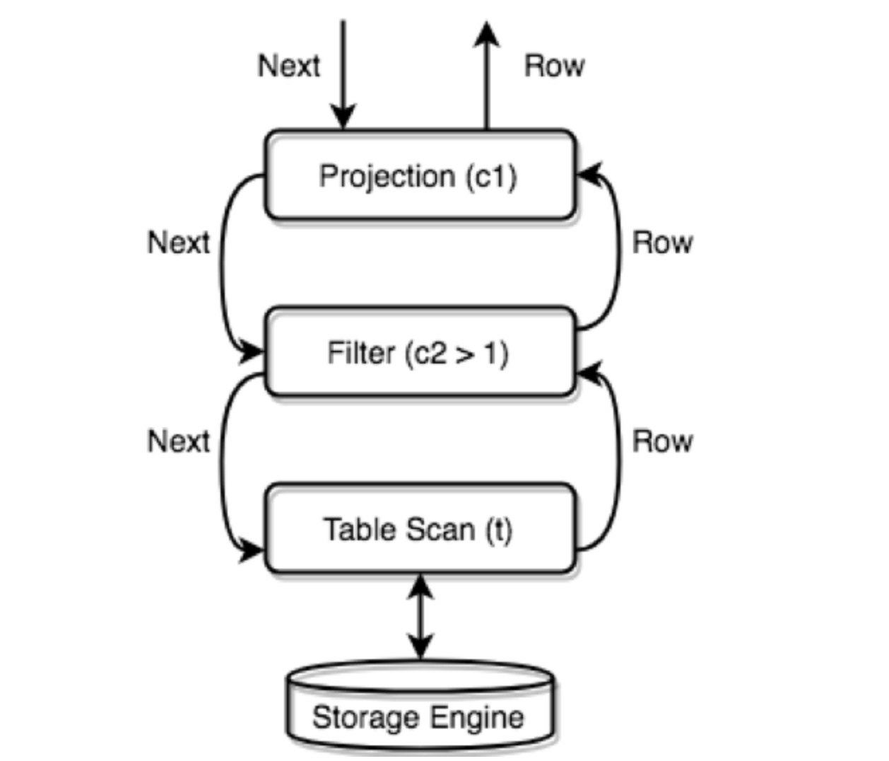 TiDB 会将所有的物理 Executor 构成一个树状结构,每一层通过调用下一层的 Next/NextChunk() 方法获取结果。