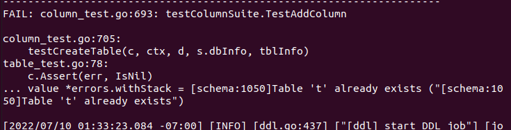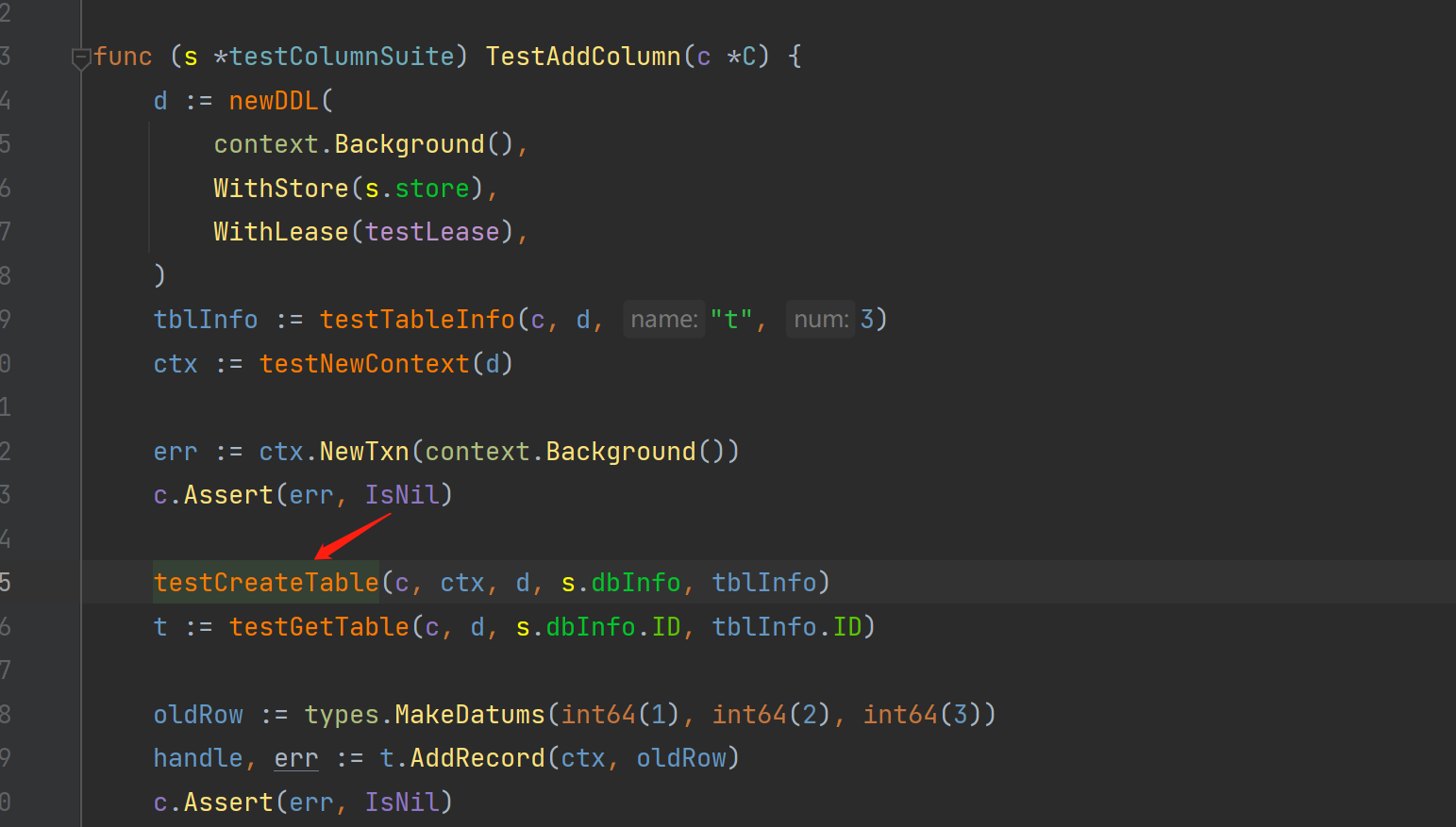 还有一个就是在这个test里面,TestAddColumn有一个创建表的代码,我查看了一下调用链,在这个action中有个调用的都是原生框架提供的代码,不过也有小概率会出错:
