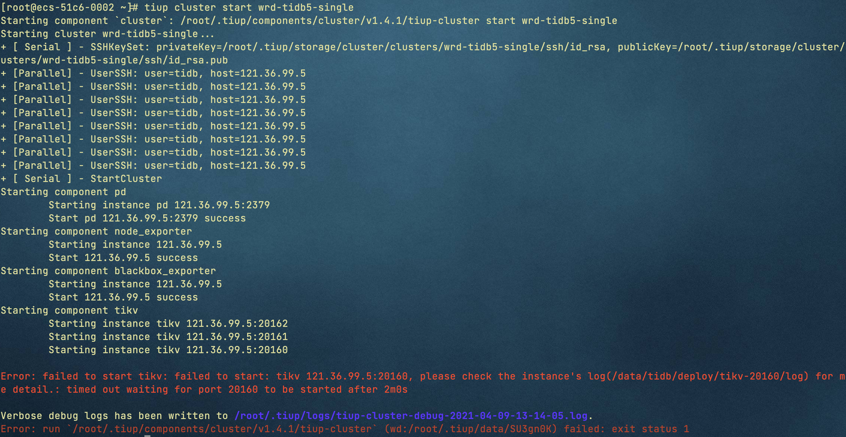 根据此文档在华为云单机上部署TiDB5.0.0