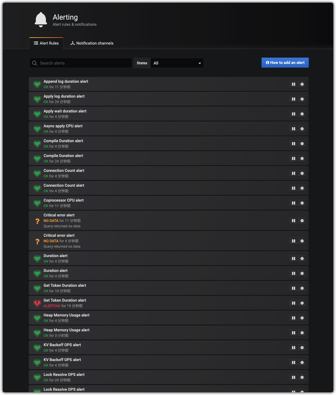 2.TiDB 的监控告警主要是依赖于 Alertmanager 组件来实现,grafana 中的监控信息不用太关注,毕竟它更多作用是展示监控数据而非专业告警,可以参考下: