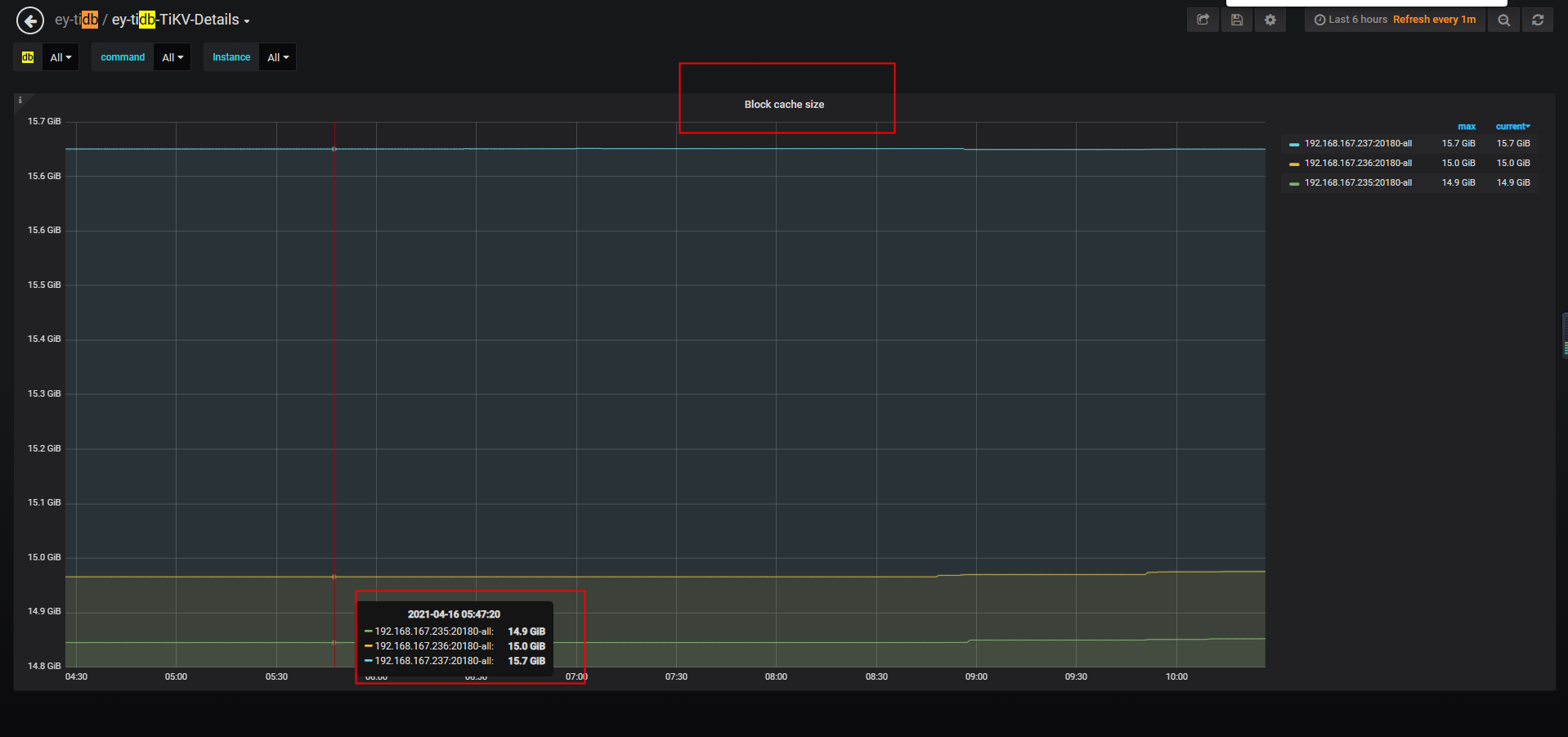 看下 TiKV-Details -> RocksDB KV -> block cache size 的监控