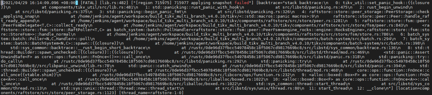 麻烦执行以下命令 find . -name “tikv.log*” |xargs grep “715975” 然后把文件上传一下吧,主要是需要看第一次 panic 之前的信息,后面不断 panic 重复的数据看不出原因。