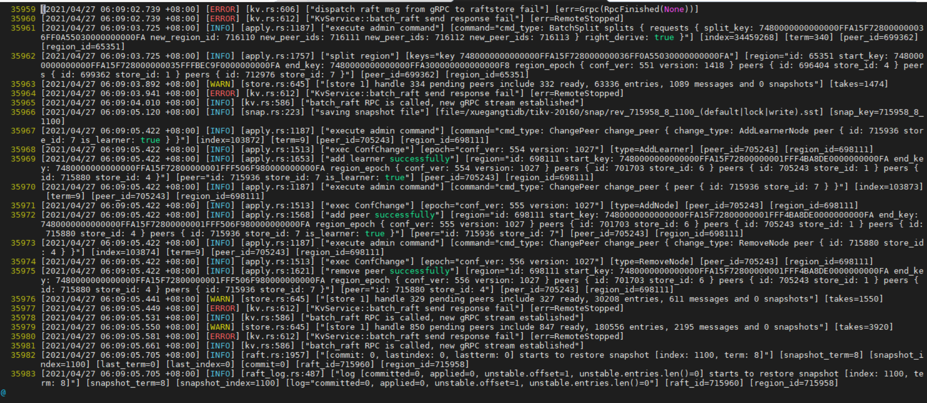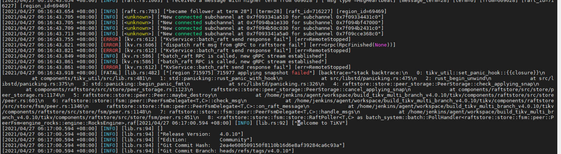 麻烦确认一下 tikv 是否有重启,通过 welcome 字段进行过滤。