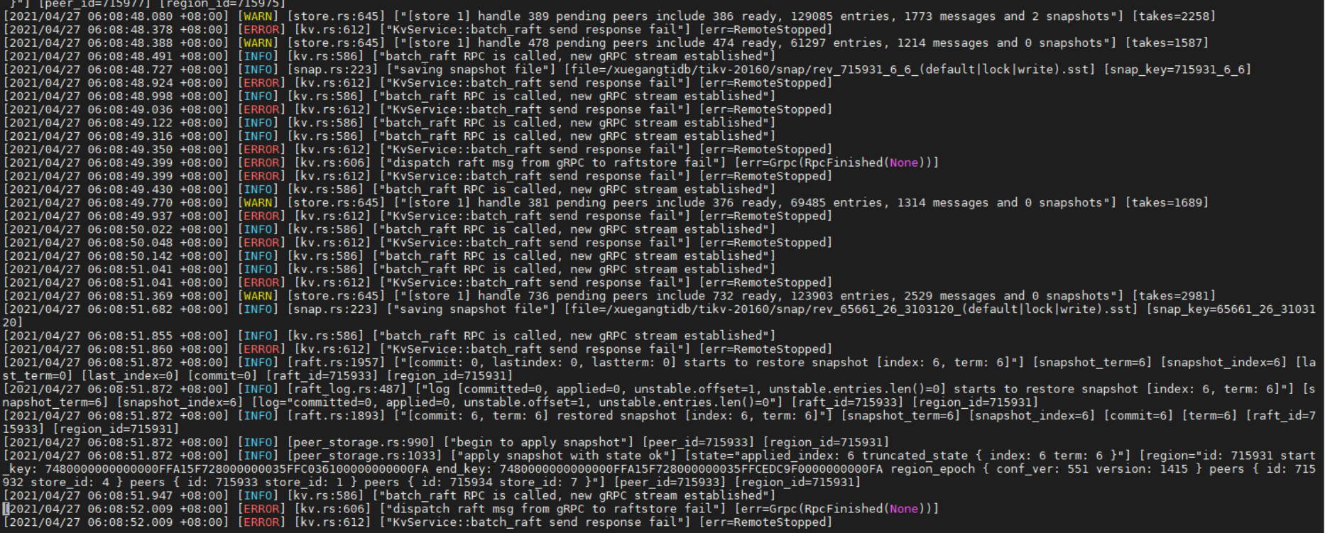 同时麻烦对这个 TiKV 当前 data/snap 目录 ls -lh|grep 715975 并贴一下结果吧,thanks!