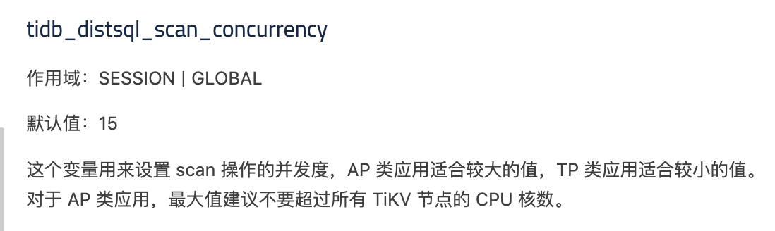 可以通过参数 tidb_distsql_scan_concurrency 参数控制用于同时向 TiKV 发送请求的worker 的数量。每个worker 只能向一个TiKV Region 发送一个 task 任务。