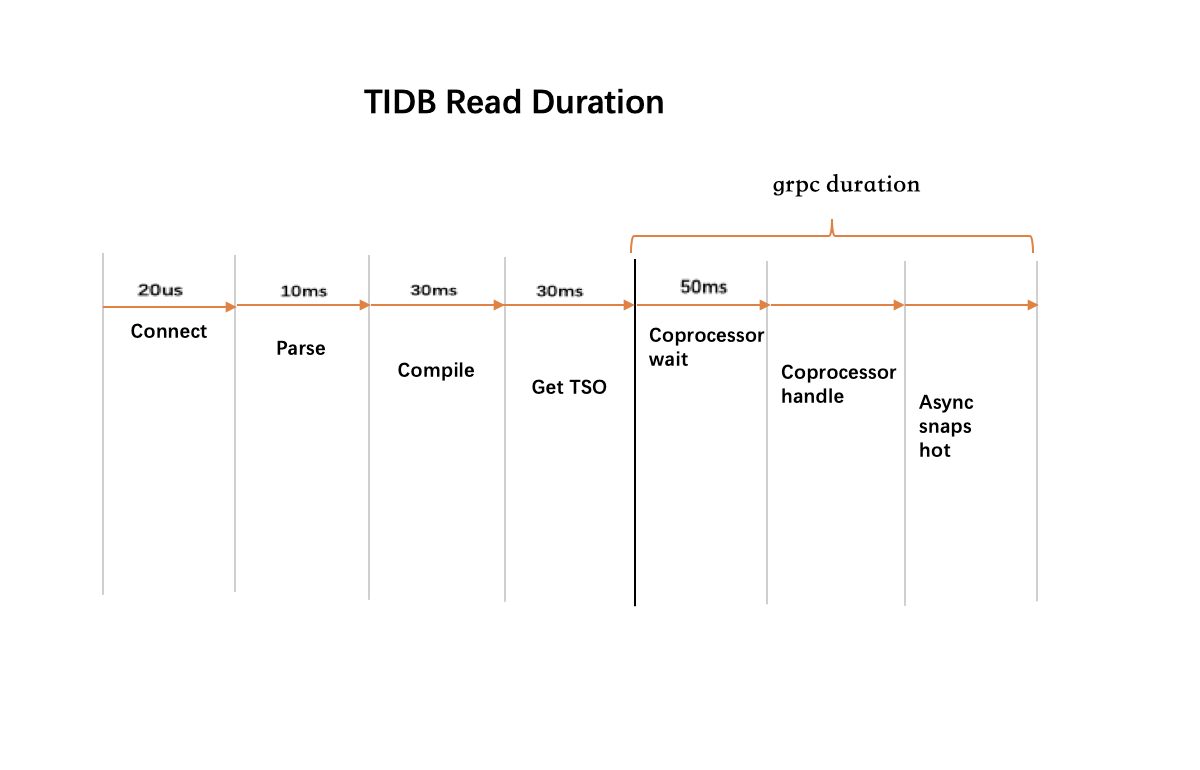 - TSO Async Duration: 拿到一个 tsFuture 之后到调用 tsFuture.Wait() 中间的时间消耗,拿到 tsFuture 之后,后续还需要进行 SQL Parse 和 Compile 成执行计划,真正执行的时候才会调用 tsFuture.Wait(),所以这部分延迟太多,可能因为: