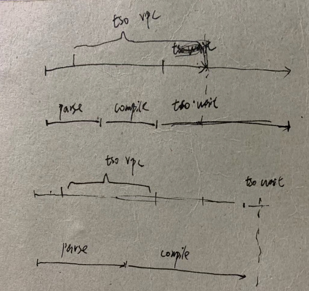 TSO Async Wait 高,输入请求的问题,比如 replace into ()() SQL 太长。可以具体看一下 parse & compile 的耗时。从开始往 pd 发请求,到我们查看请求结果,这个是 tso async wait