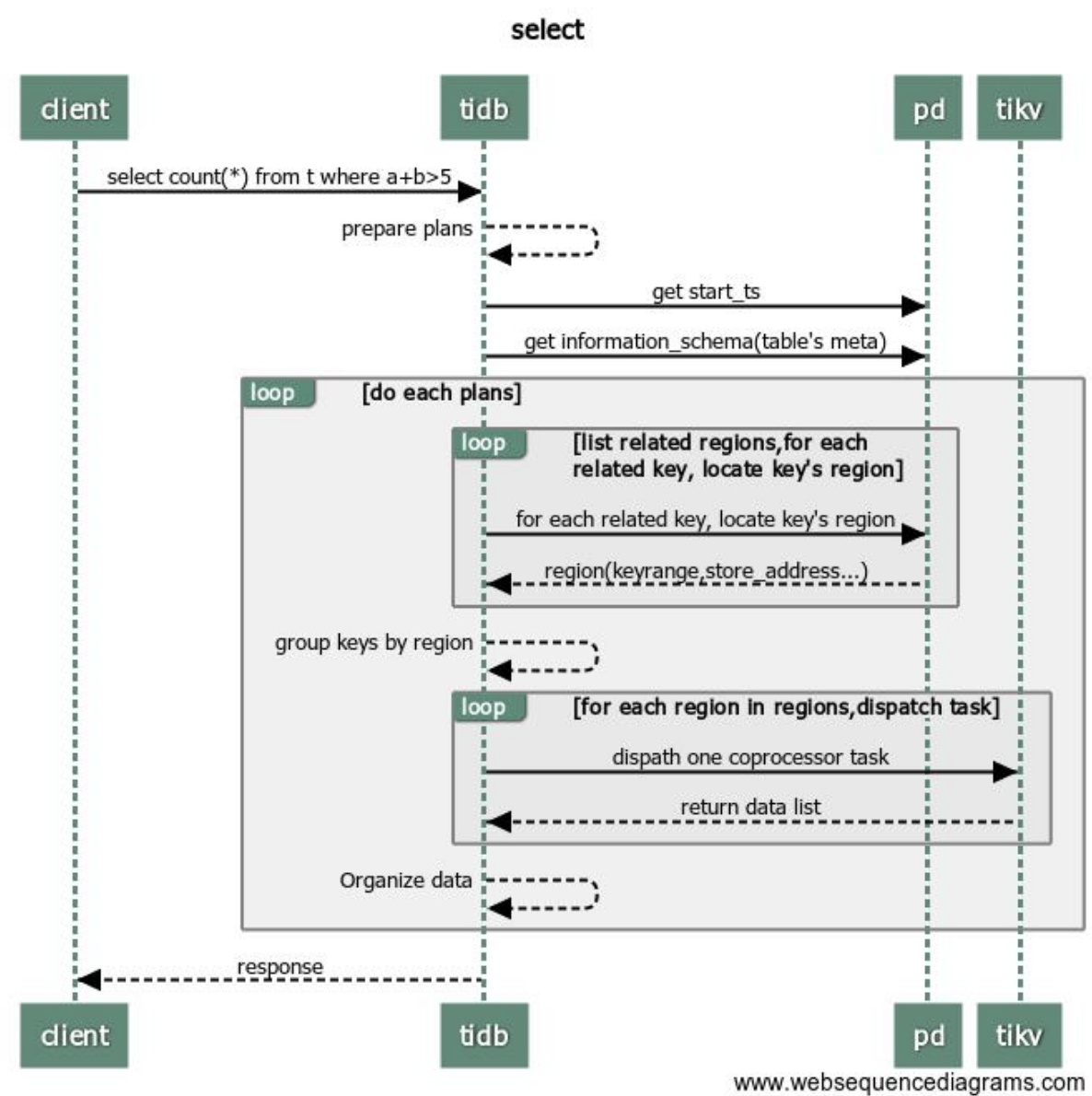 tidb 并发向所有 regions 对应的 tikv 分发 select 请求。