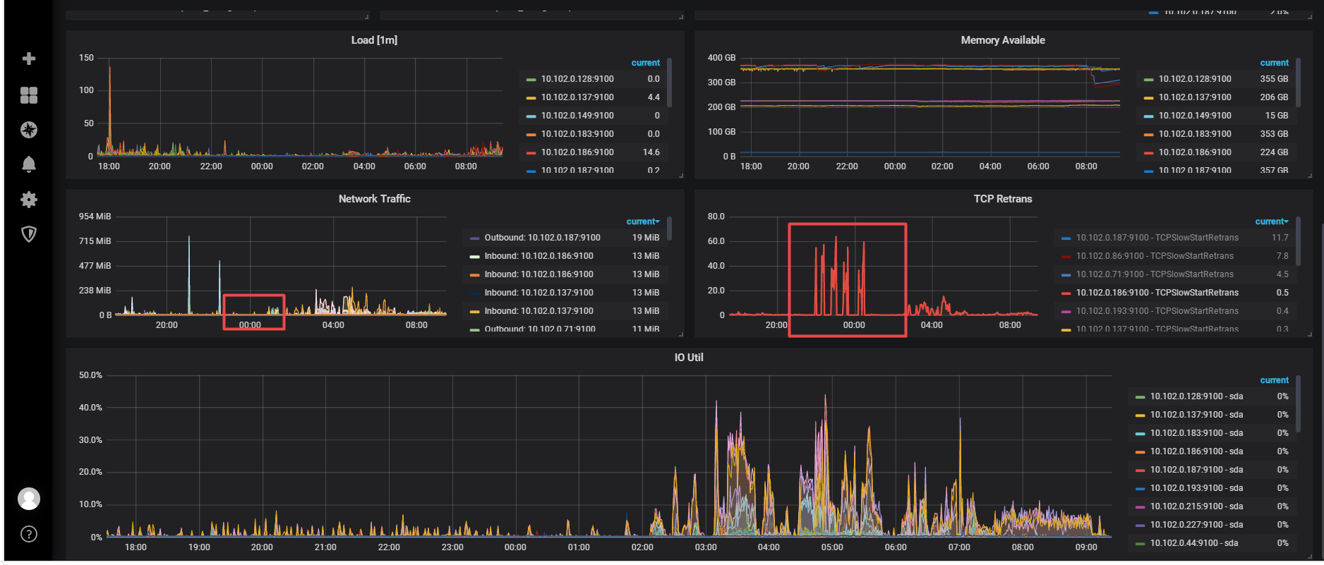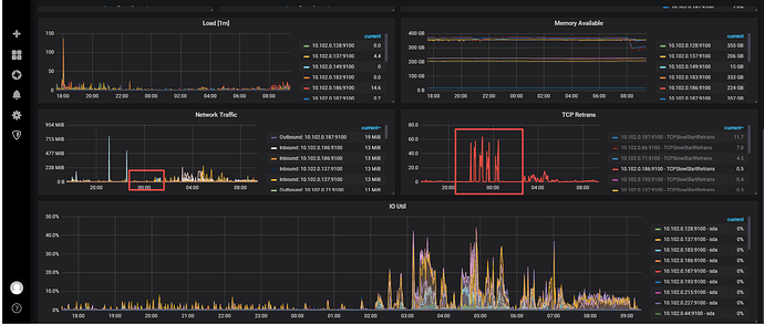 看监控发现tcp retans 有点高,但是这个点网卡流量不大。正好是我备份时候的时间点。