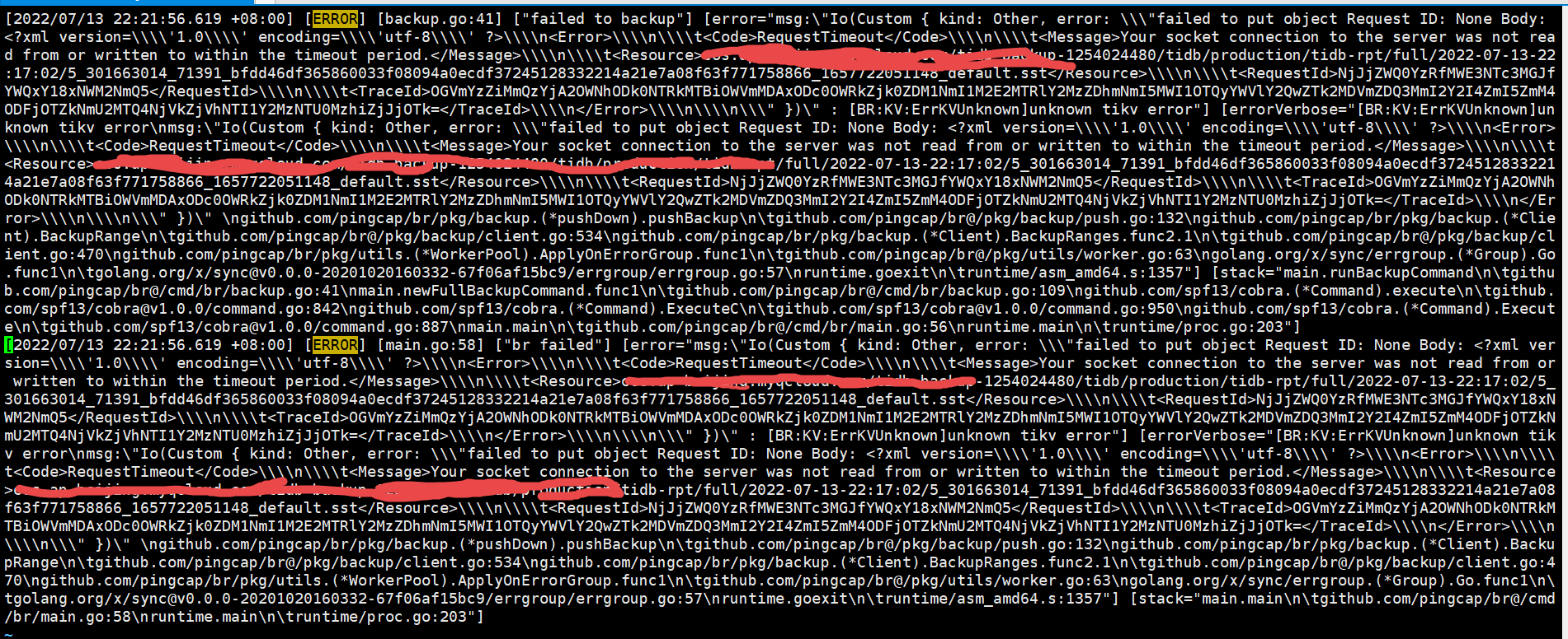 tidb集群和 备份的存储跨云了,专线不稳定,备份过程中网络通讯有问题,任务超时中断了。
