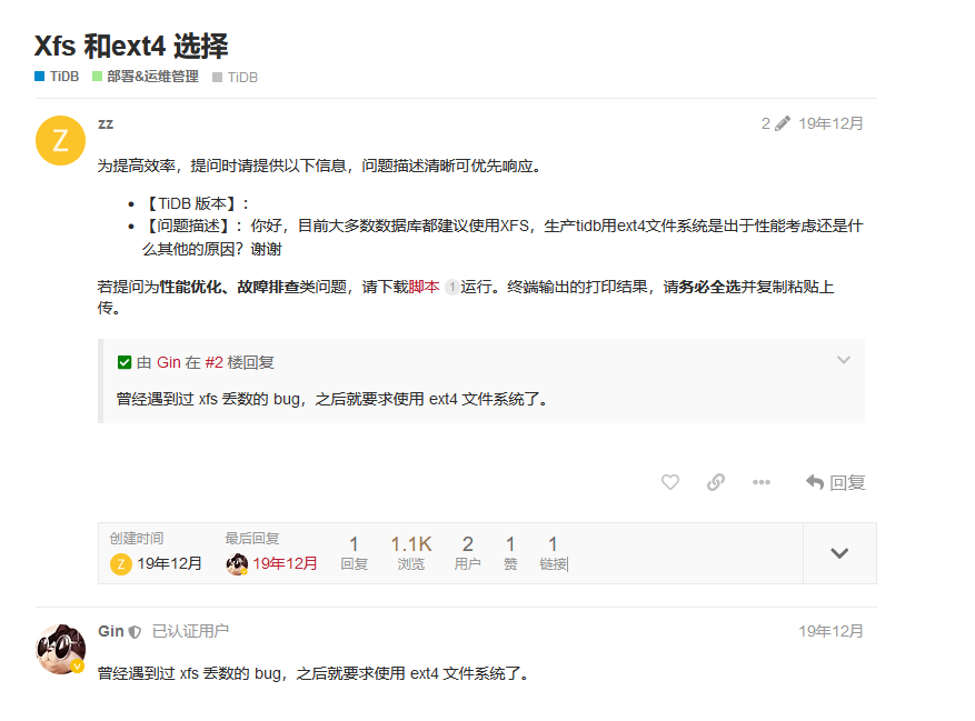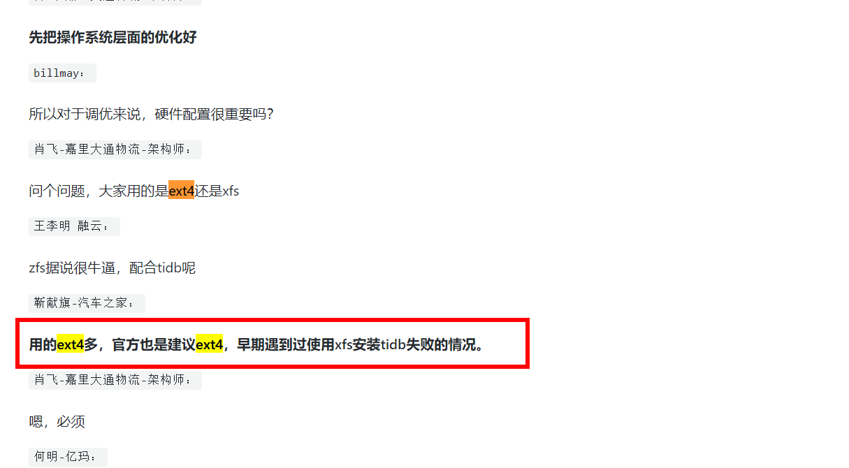 centos7 默认xfs,看你系统版本,新上线的TIDB选5.3之后比较好