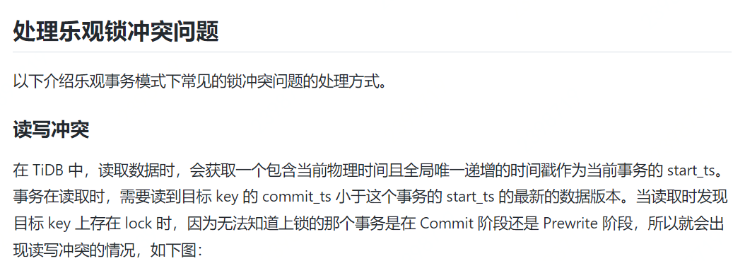 我最开始的问题就是这个疑问,tidb中有了mvcc以后为什么还会有读写冲突的问题存在,但是看上面的讨论,好像不是这么回事呀![]()