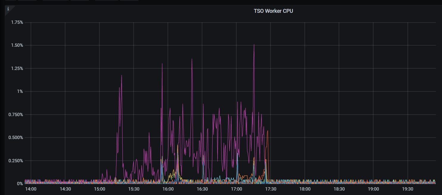 故障持续时间:25日 15:00-17:27,期间做了一轮kv,tiflash,db节点重启均无效果,sql无论查询还是update都很慢(sql 的qps比正常期间少,因为已经转移走了一部分流量),17:27时stop 掉故障节点后机器sql处理恢复正常