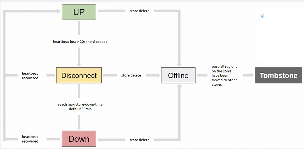 而后才发现,有一 region 10353493 的状态不正常,有一 peer 是 learner 另两个 peer 因其 store 被设为 tombstone 而无法存取 Tidb cluster ready 状态为 true 目前已尝试透过 curl -X POST ‘http://{pd_ip}:{pd_port}/pd/api/v1/store/{store_id}/state?state=Up’ 再把 1002 叫起 并试图把 tikv replica 再次扩充,想要重新跑出新的 tikv node 并挂载其对应的 store 1002 但目前看起来似乎没有作用,tikv 的 statefulset 也没有进行相对应的修改