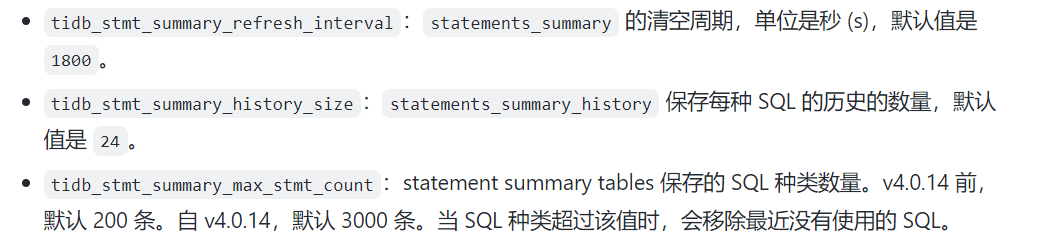我感觉cluster_statements_summary(这个视图现在总的记录条数也就15条)这个视图查看出来的信息不准呀,我刚刚执行了一个SQL,然后在这个视图里面就查看不到。
