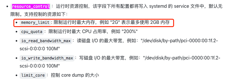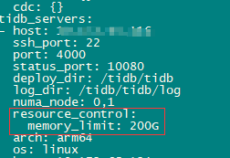 可以参考文档: https://docs.pingcap.com/zh/tidb/stable/tiup-cluster-topology-reference#global (本质上是使用 systemd 的系统限制功能)