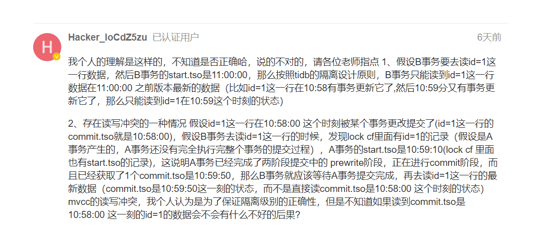 最近一直在研究tidb mvcc读取数据的流程,之前一直在想1个问题,为什么mvcc读的时候会有读写冲突呢?