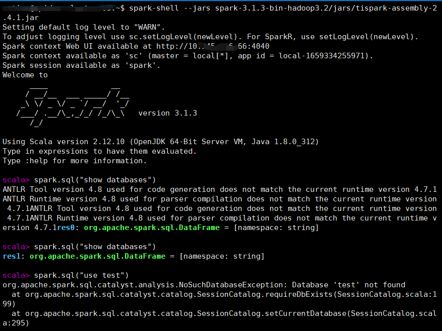 spark-shell启动TiSpark,可是根本访问不到tidb的数据库???