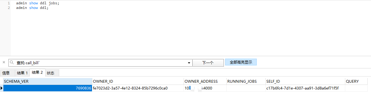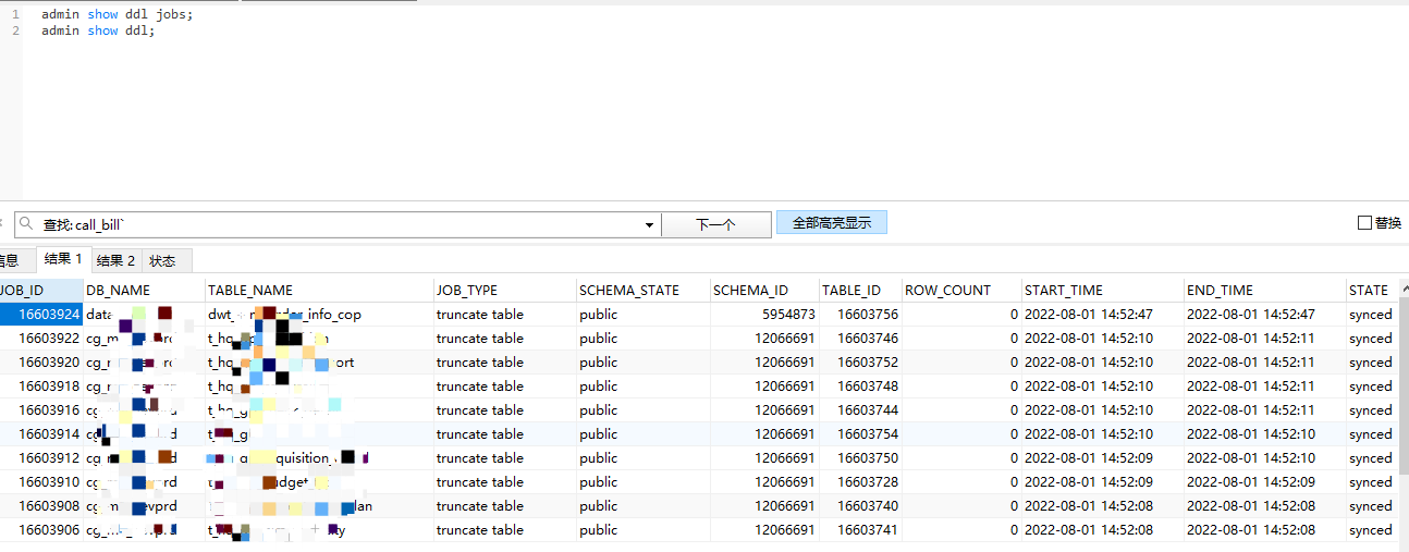 admin show ddl jobs;