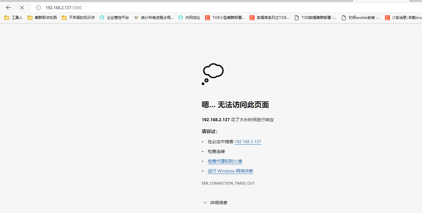 既然访问3000不通,那一般情况下就是网络问题了,没有必要看日志了,而且你发的是tiup的日志。