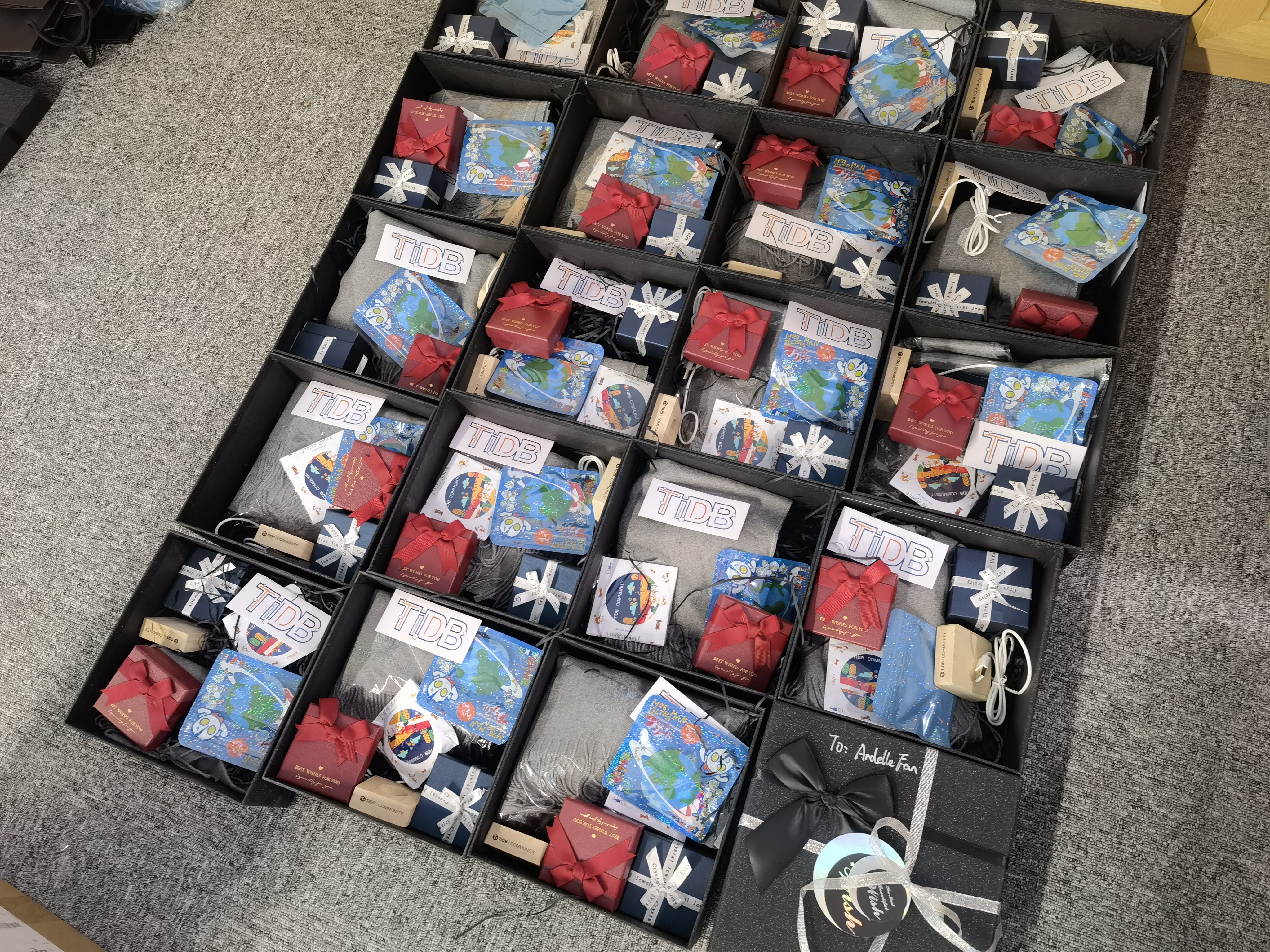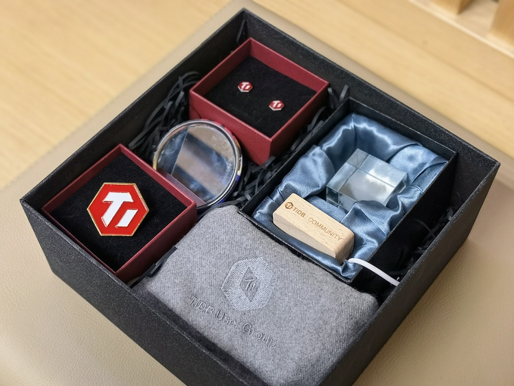 七夕礼盒钟爱7套装:定制款 Ti 耳钉+化妆镜 +定制款水晶爱心云夜灯礼盒+绝版羊毛围巾+ TiDB 新挎包 + 绝版款加长加宽鼠标垫 + 绝版款游戏机移动电源