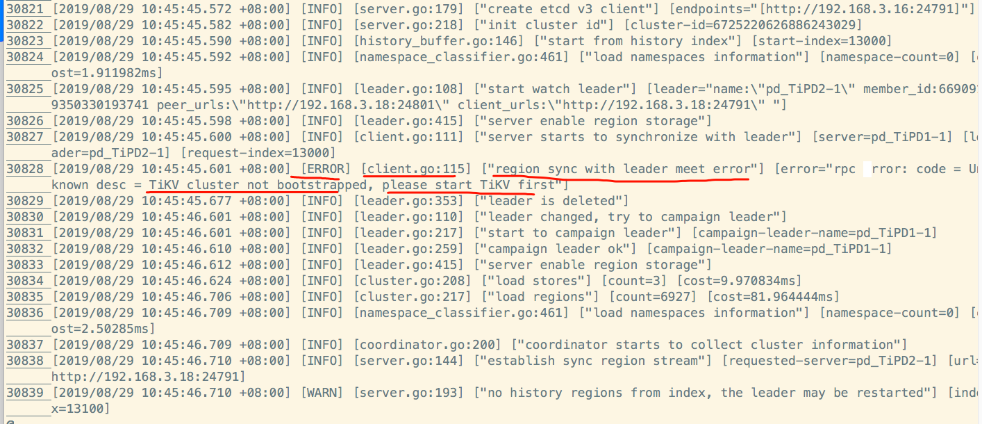 2019/08/28 16:45:24 loader.go:124: [fatal] Error 9001: PD server timeout