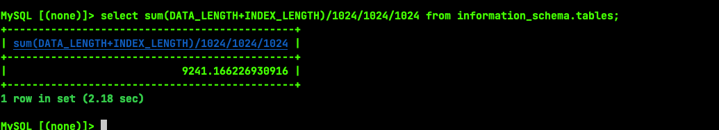 现在就是要排查哪个库表占用最大的问题,可能有些不必要的数据需要清理