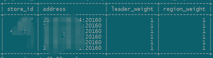 select store_id,address,leader_weight,region_weight from information_schema.tikv_store_status; 看下