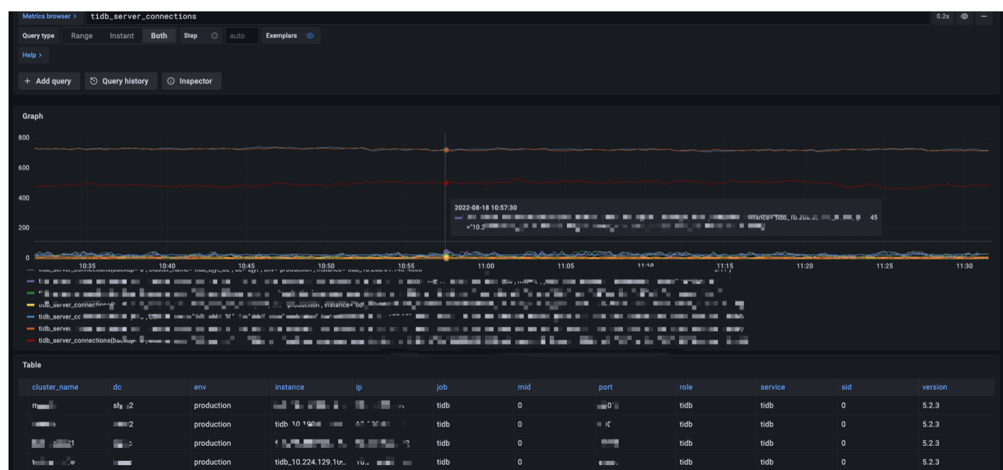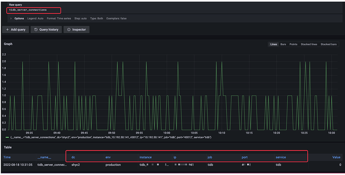 简单配置grafana后,执行tidb 一个监控项比如tidb_server_connections已经可以获取到我们在consul 定制的tag 指标