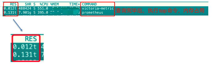 查看VictoriaMetrics和Prometheus两个进程的内存占用情况