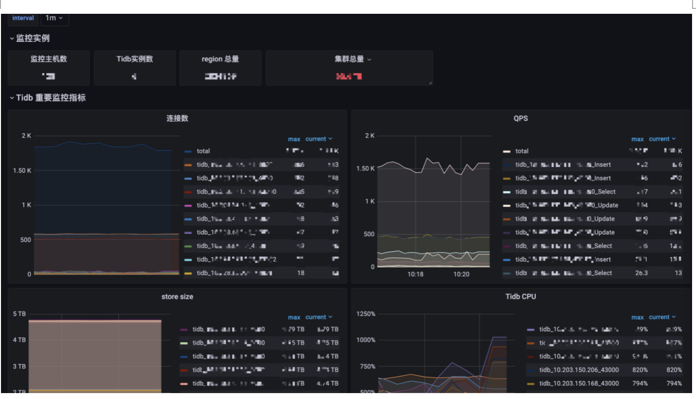 Grafana 具体监控项目可参考tidb v6.1.0起推出的performance_overview.json,即使版本低于6,也可以直接倒入这个json使用,个别监控项可以针对性调整下
