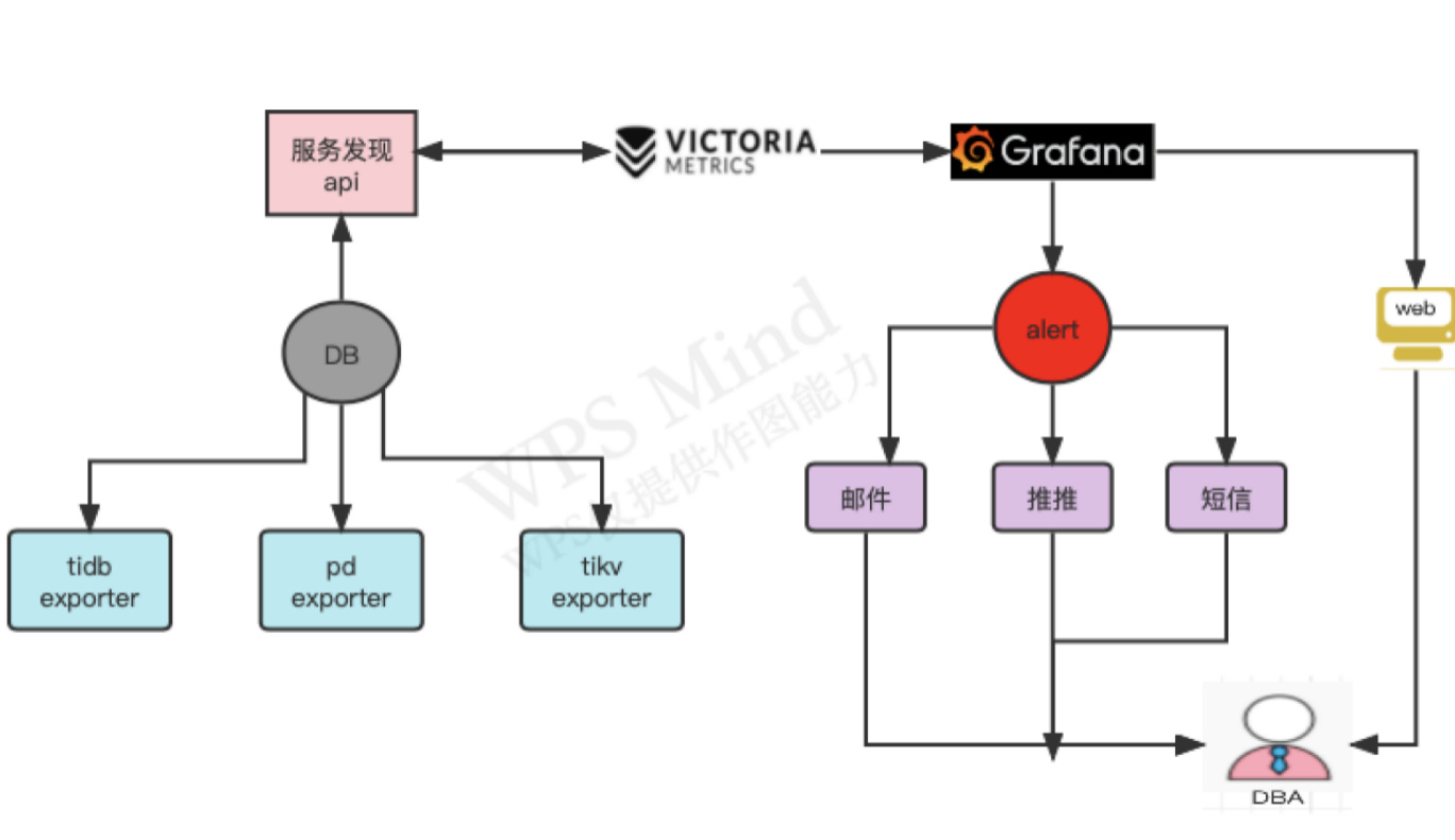 简单说下思路,主要利用tornado技术编写后端服务发现api,然后put db exporter 指标到api,VM 再通过api get 获取到db 的exporter 信息grafana图形化展示出来